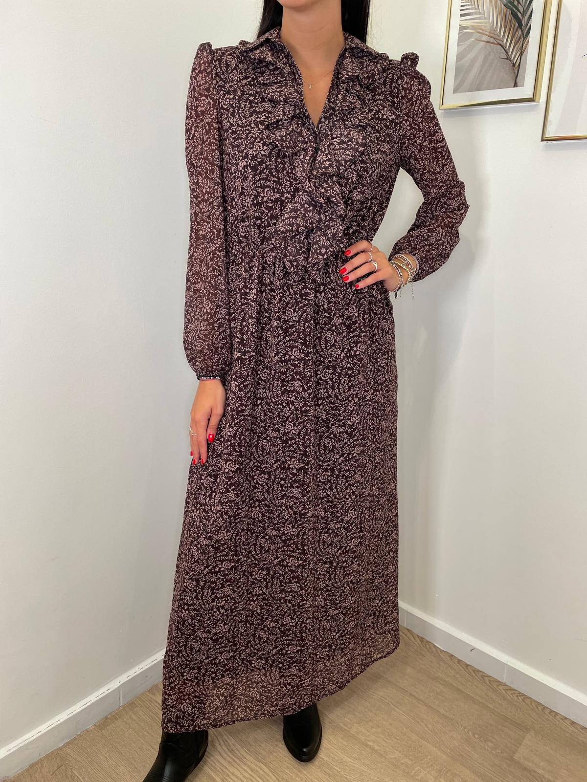 L'abito Crystal lungo presenta un raffinato motivo a fiorellini, ideale per chi cerca un tocco delicato ma distintivo. Il design con scollo a V valorizza la silhouette, mentre le balze aggiungono un movimento elegante e femminile al capo. Ottima vestibilità grazie all'elastico sulla vita.