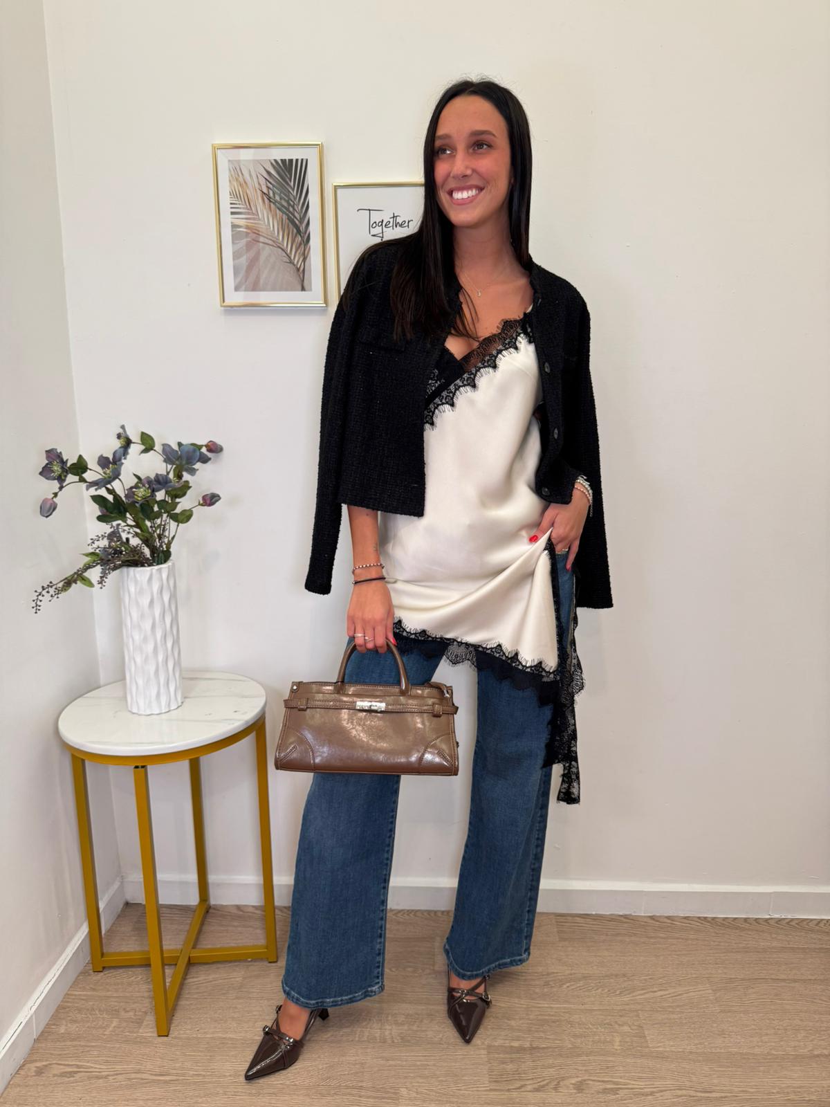 Abito dallo stile lingerie nella variante panna, taglia unica.