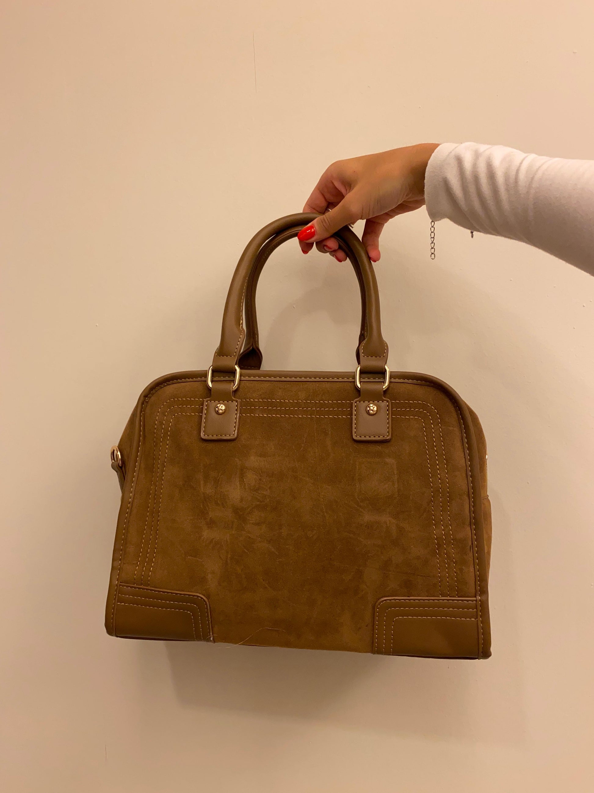 La borsa Margot scamosciata unisce eleganza e struttura grazie alle cuciture evidenti che ne definiscono il design. Accessoriata di tracolla regolabile, diversi scompartimenti e taschine interne.