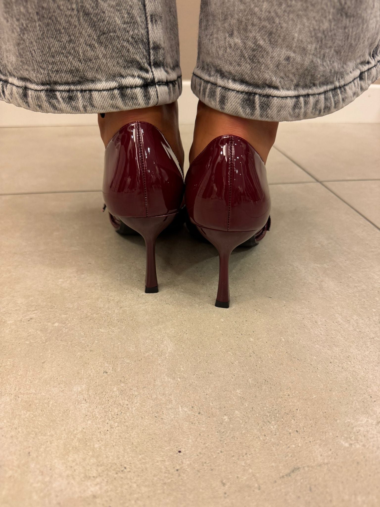 Queste decolletè in vernice color vino si distinguono per l’eleganza raffinata e la finitura lucida che esalta la qualità artigianale. Lo stile classico è valorizzato da un design curato nei dettagli, perfetto per chi cerca un prodotto versatile, adatto sia a occasioni formali che a momenti più esclusivi. Un modello che unisce estetica e comfort con competenza professionale.