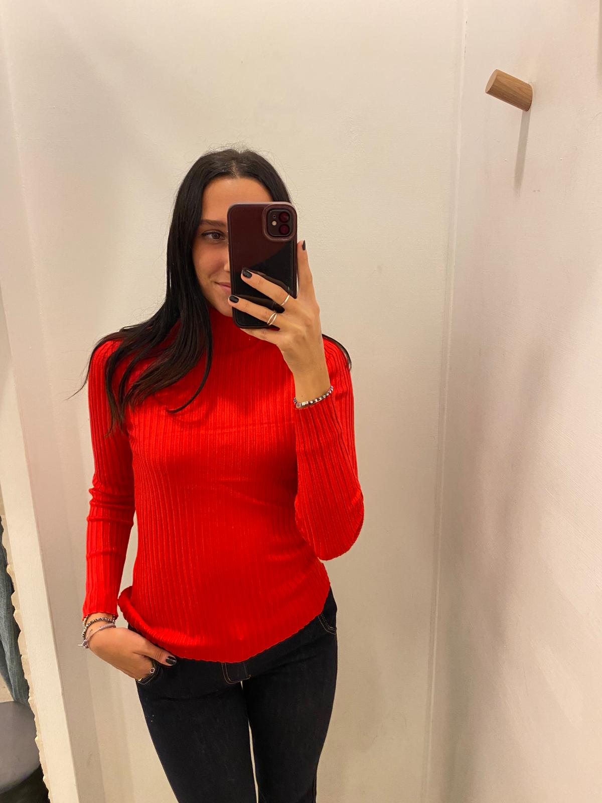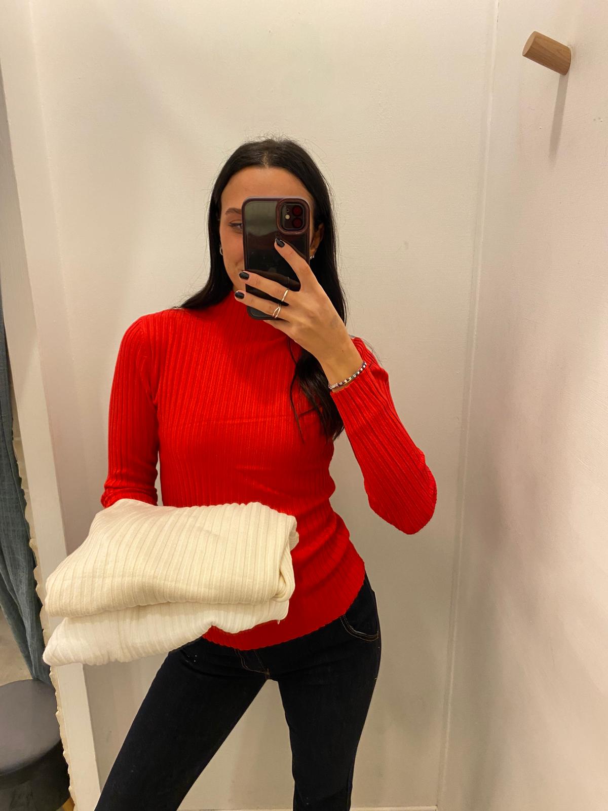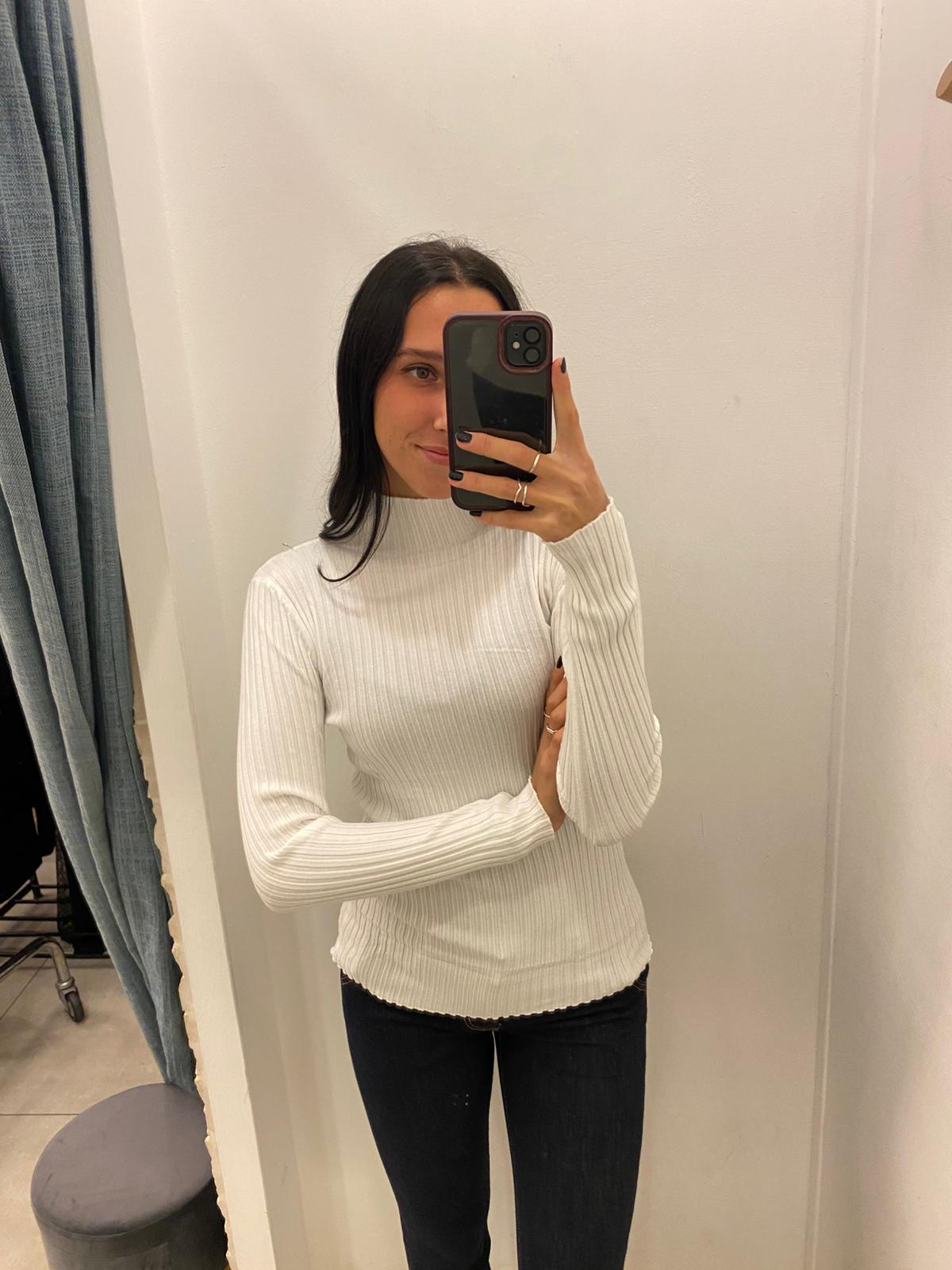 Dolcevita a costine con collo a taglio vivo, in tessuto misto viscosa e cotone. Taglia unica