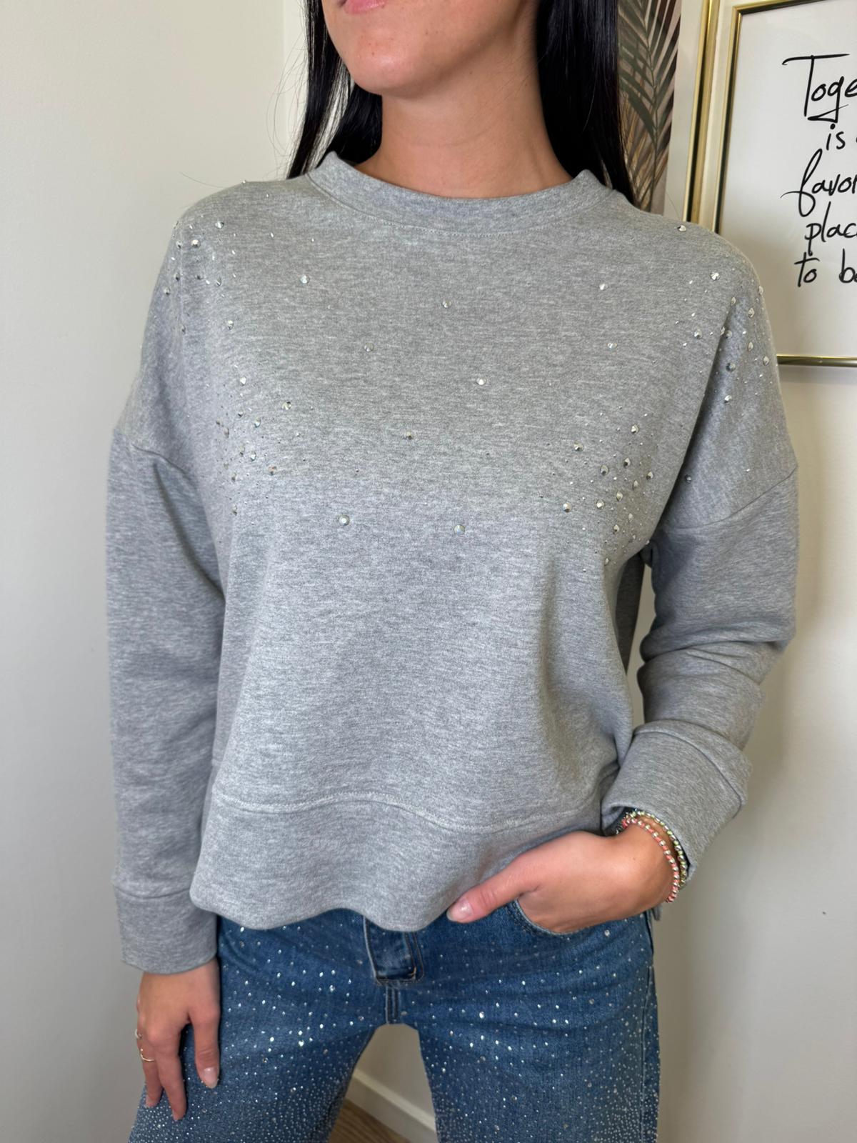Felpa con strass grigia
