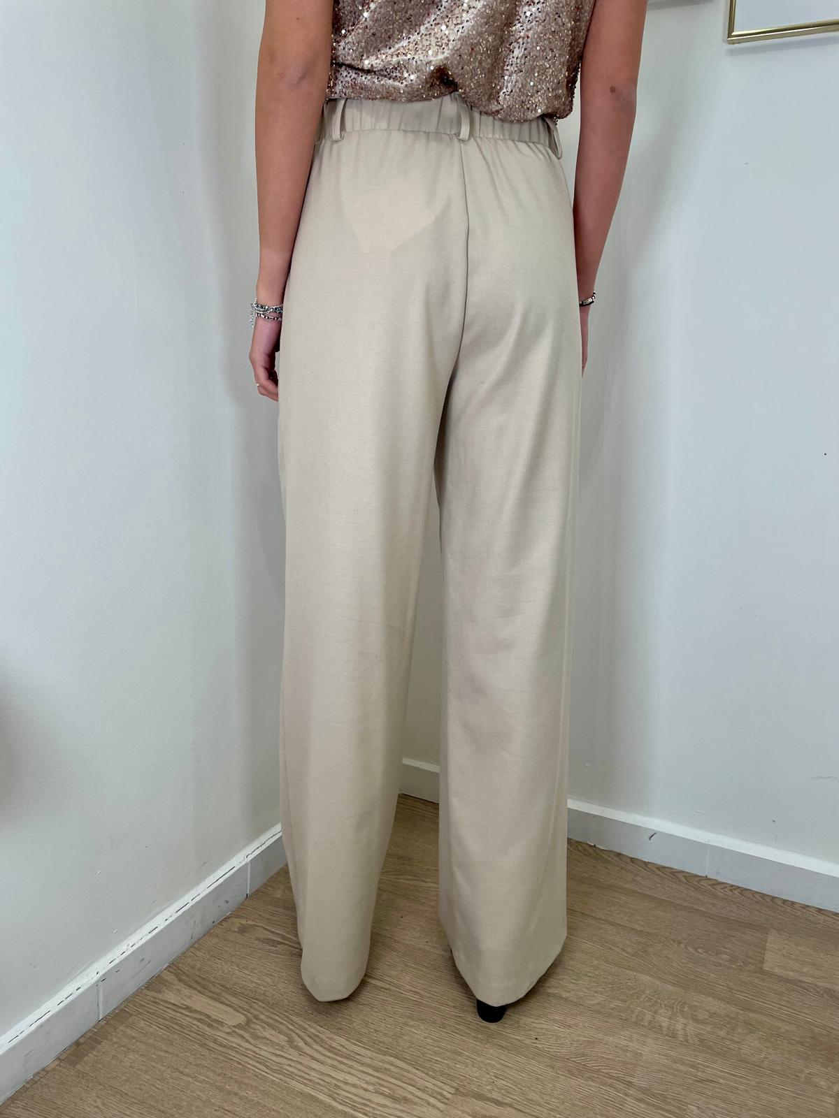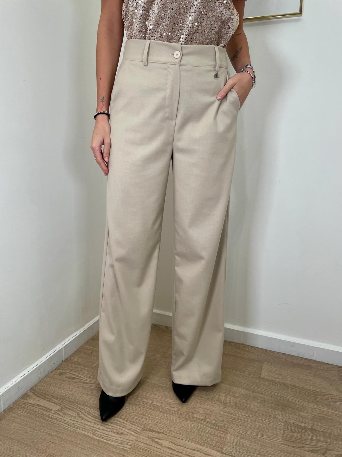 Pantapalazzo in tonalità burro realizzato con tessuto morbido e confortevole. La vita elasticizzata garantisce una vestibilità perfetta e una libertà di movimento ottimale, adattandosi naturalmente al corpo. Ideale per creare look casual eleganti e versatili, questo capo si abbina facilmente con qualsiasi pezzo della vostra collezione. Un essenziale moderno che unisce praticità e stile senza compromessi.