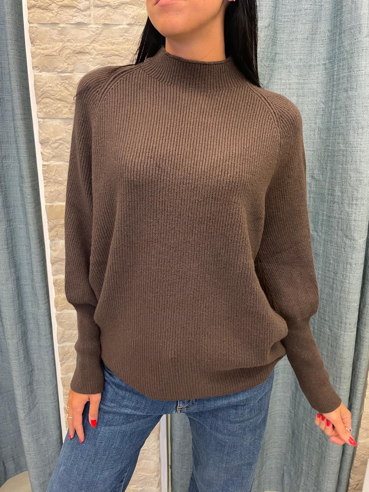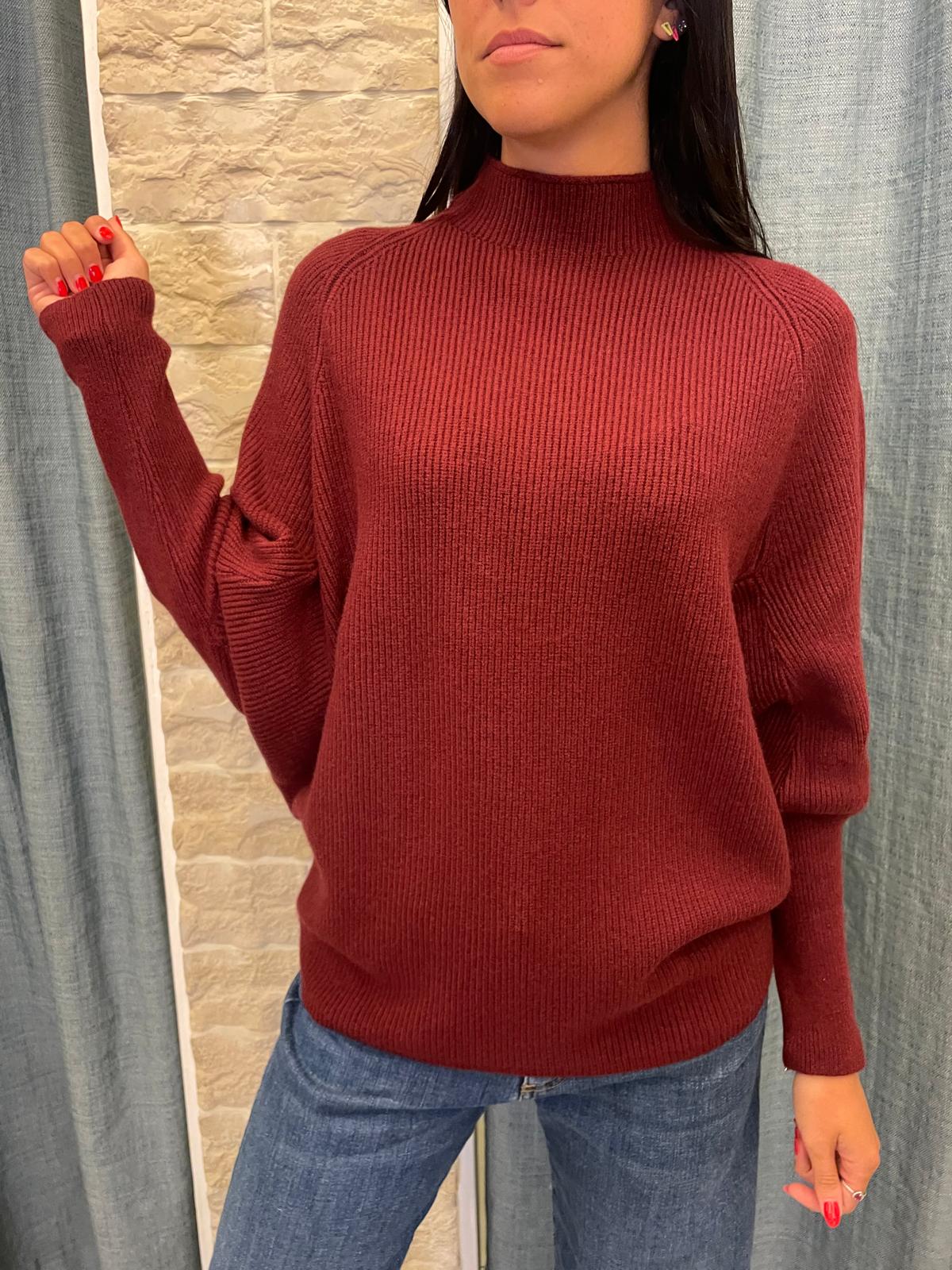 Pull morbidissimo con scollo alto, vestibilità over, costine.