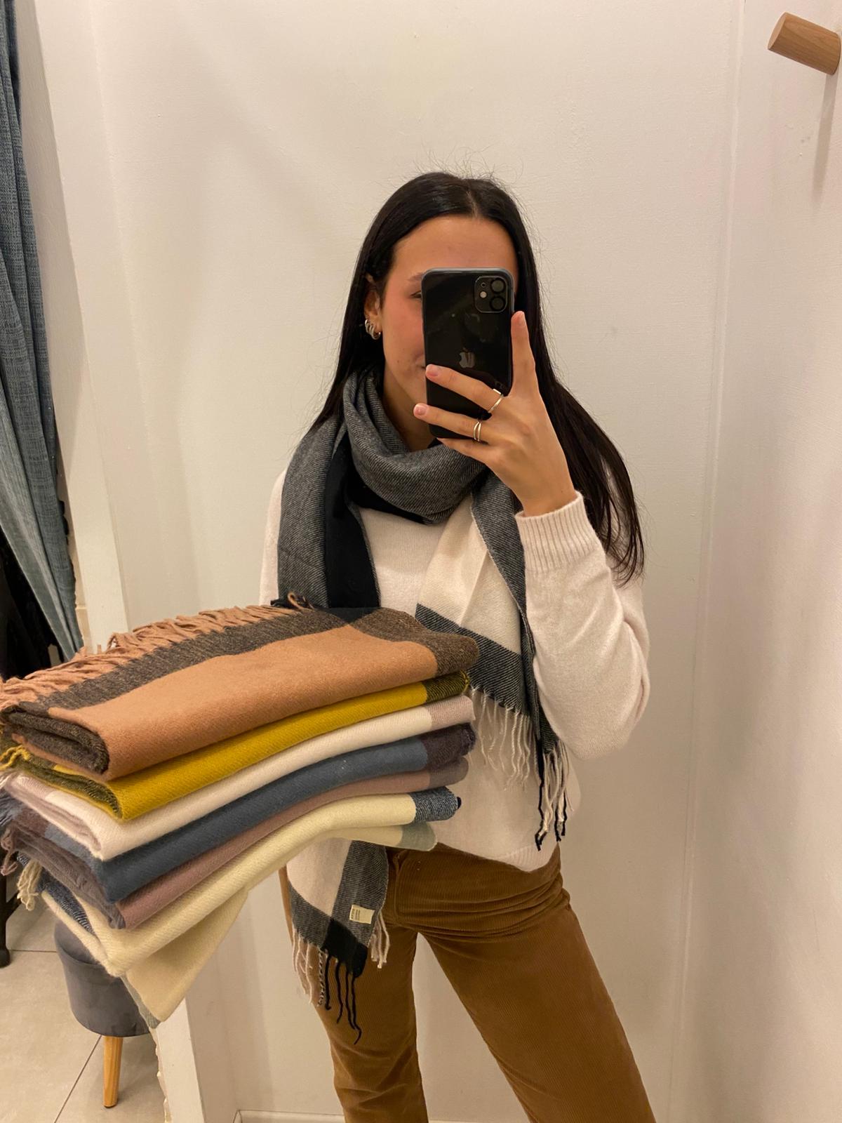 Sciarpa in tessuto 100% viscosa, a fantasia quadrettoni. Morbidissima e calda