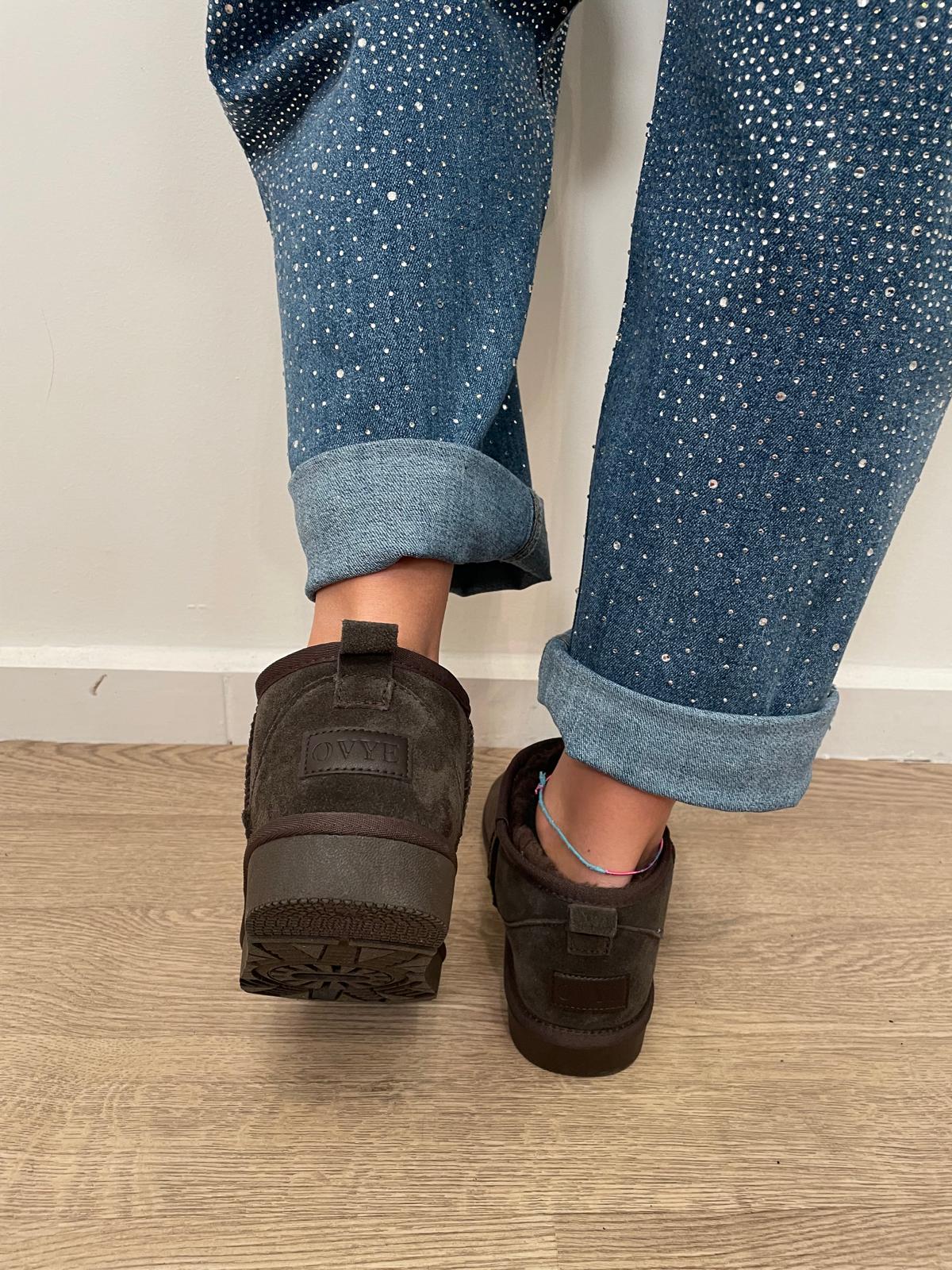 Stivaletto mini scamosciato ispired ugg. Nella colorazione testa di Moro con eco pelliccia interna tono su tono. Ovyè