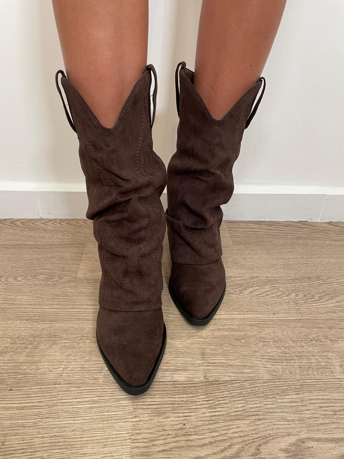Questi stivali Texano in camoscio color cioccolato offrono un equilibrio perfetto tra stile classico e comfort duraturo. Il materiale in pelle scamosciata assicura una texture morbida e una resistenza ideale per un uso quotidiano, mentre il design texano aggiunge un tocco distintivo e versatile al guardaroba. Perfetti per completare look casual o più sofisticati, garantiscono stabilità e comfort grazie alla suola robusta e alla calzata studiata nei dettagli.